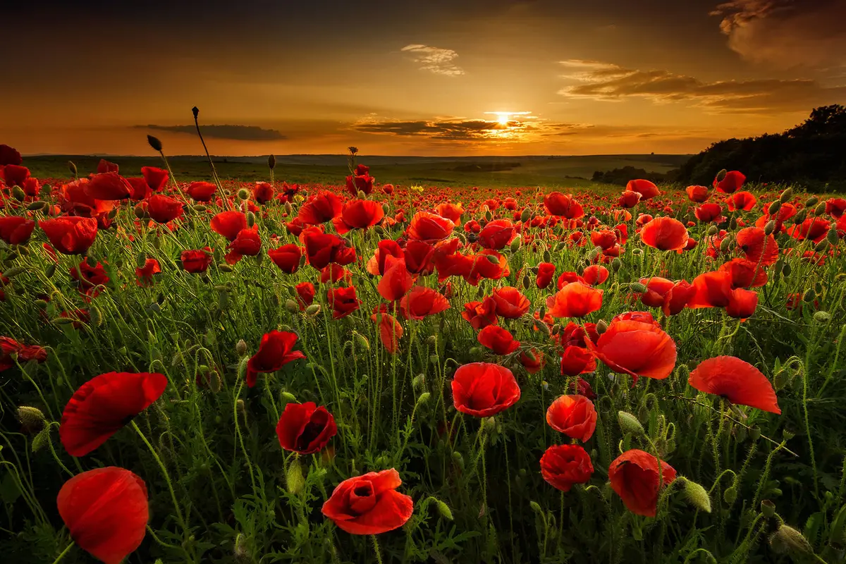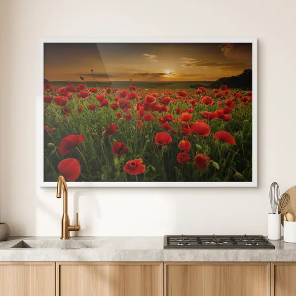Poster Elav poppide põld päikeseloojangul Nr f05477
