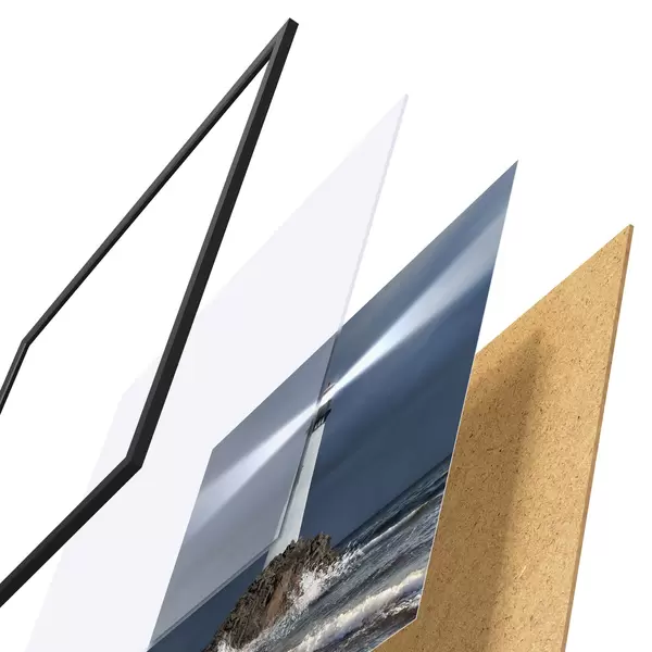Plakat koosneb raamist, pleksiklaasist, trükitud pildist ja puitlaastplaadist alusplaadist. Tänu tagaküljel olevatele kinnitustele saab plakati kohe seinale riputada.