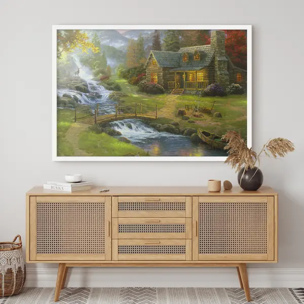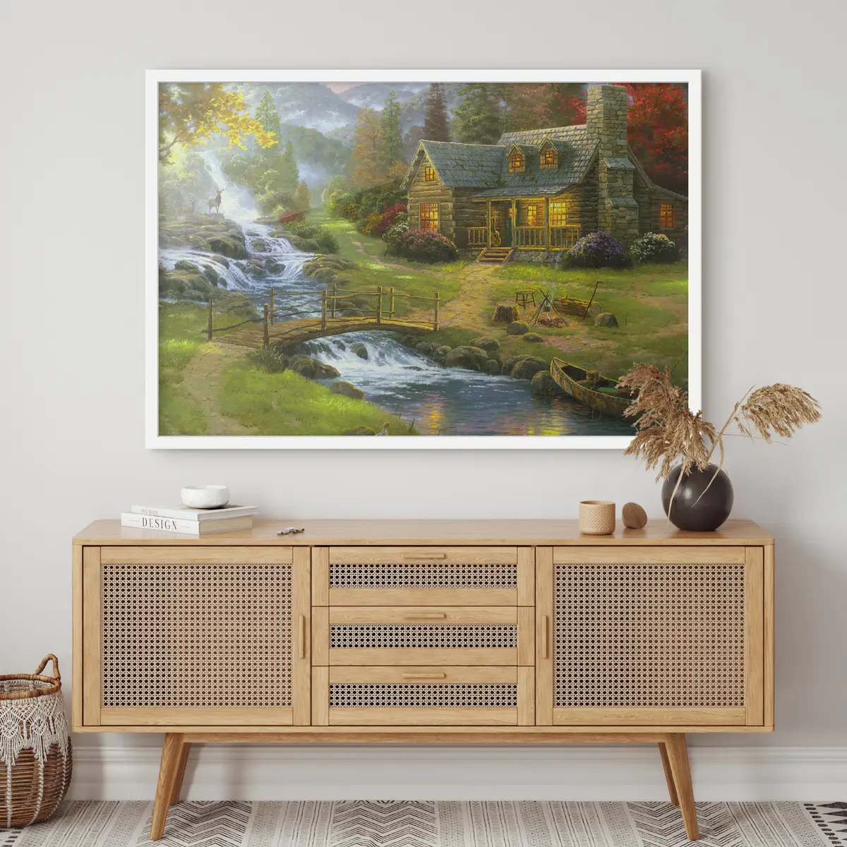 Plakat Võluv suvila rahuliku jõe ääres f15144
