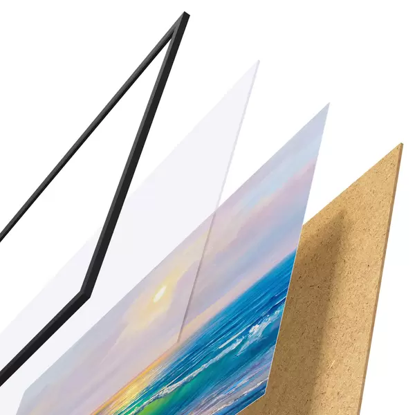 Plakat koosneb raamist, pleksiklaasist, trükitud pildist ja puitlaastplaadist alusplaadist. Tänu tagaküljel olevatele kinnitustele saab plakati kohe seinale riputada.