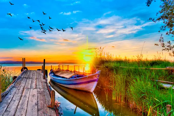 Plakat Rahulik päikeseloojang rahulikel vetel f17989