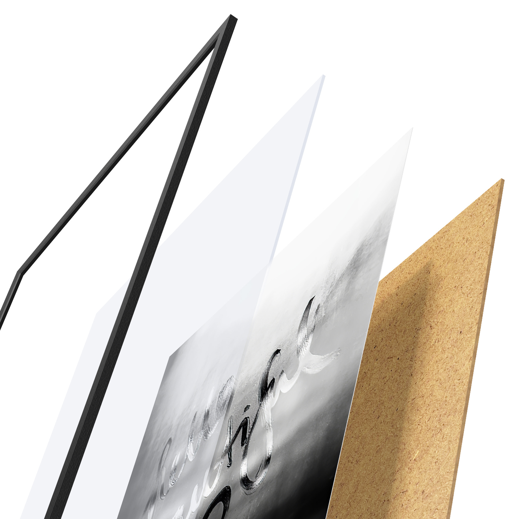 Plakat koosneb raamist, pleksiklaasist, trükitud pildist ja puitlaastplaadist alusplaadist. Tänu tagaküljel olevatele kinnitustele saab plakati kohe seinale riputada.