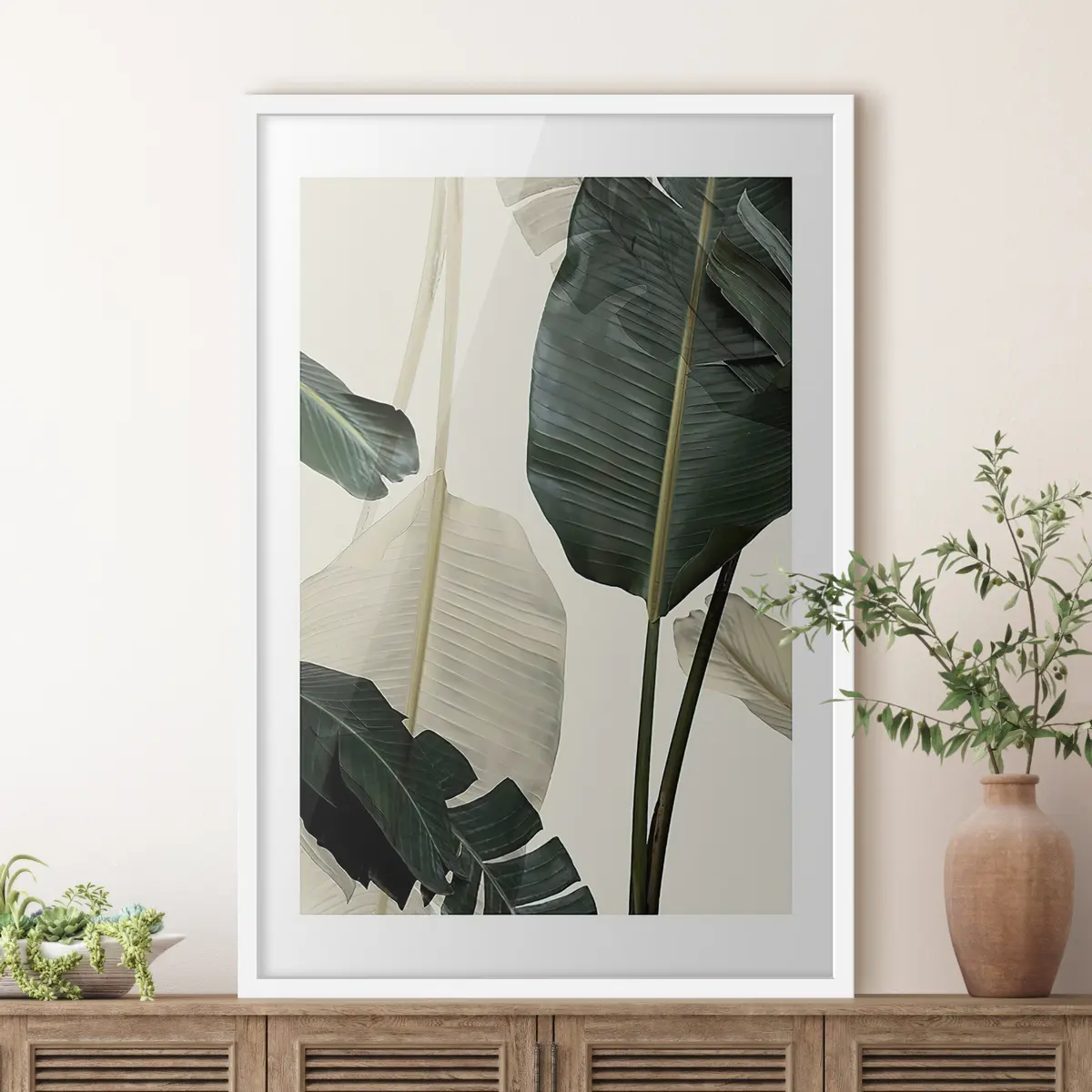 Plakat Lopsakad rohelised lehed pehmes valguses f21746