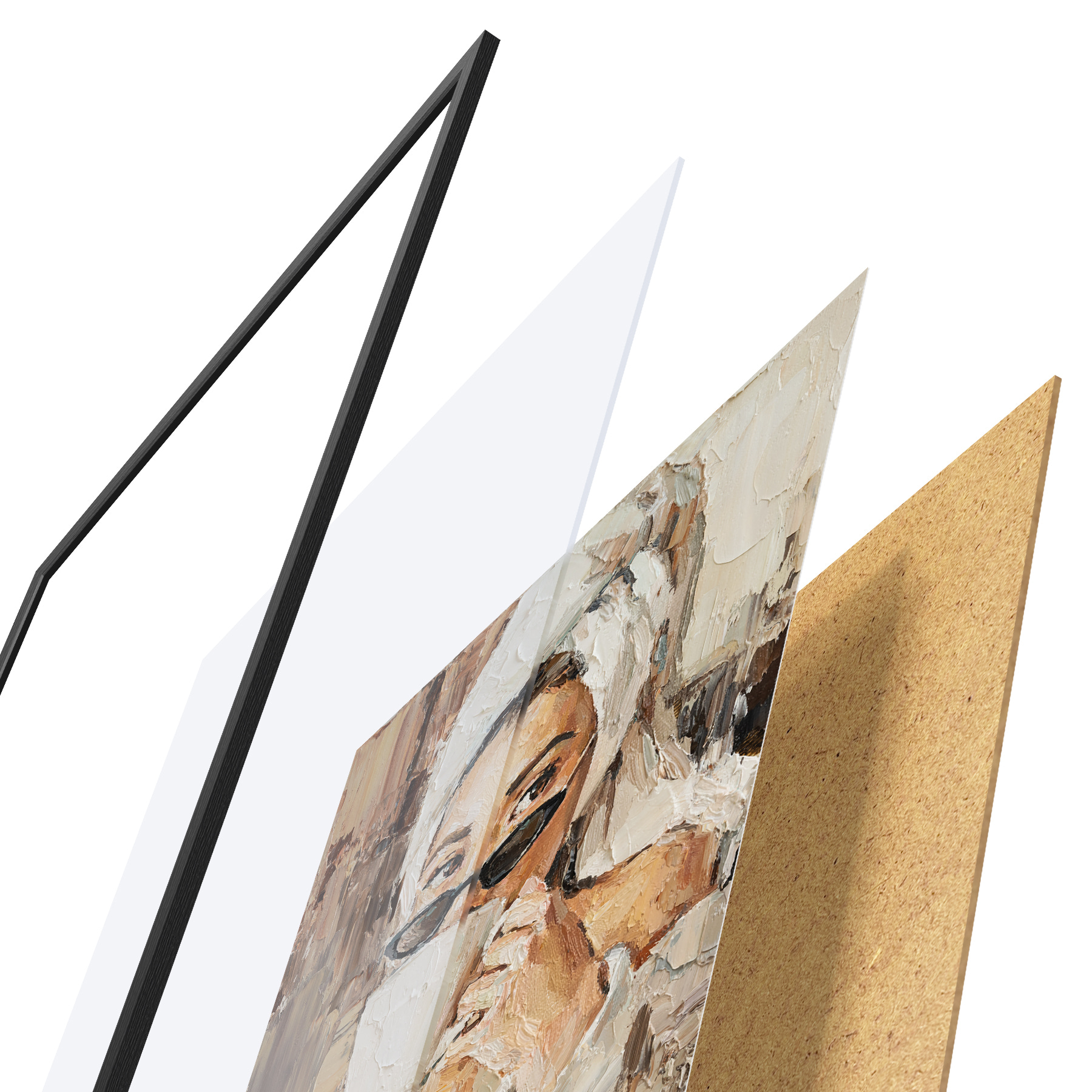Plakat koosneb raamist, pleksiklaasist, trükitud pildist ja puitlaastplaadist alusplaadist. Tänu tagaküljel olevatele kinnitustele saab plakati kohe seinale riputada.
