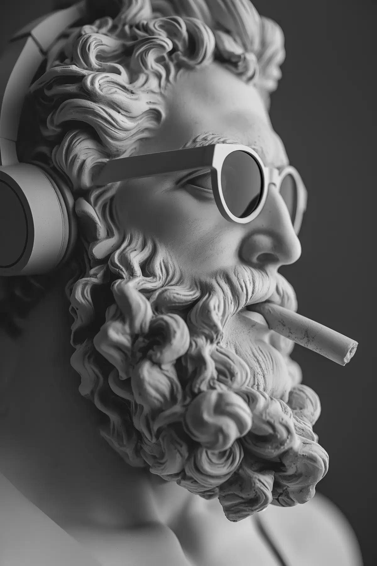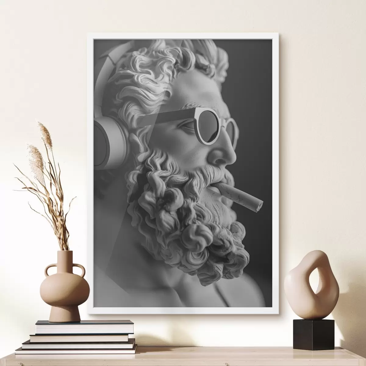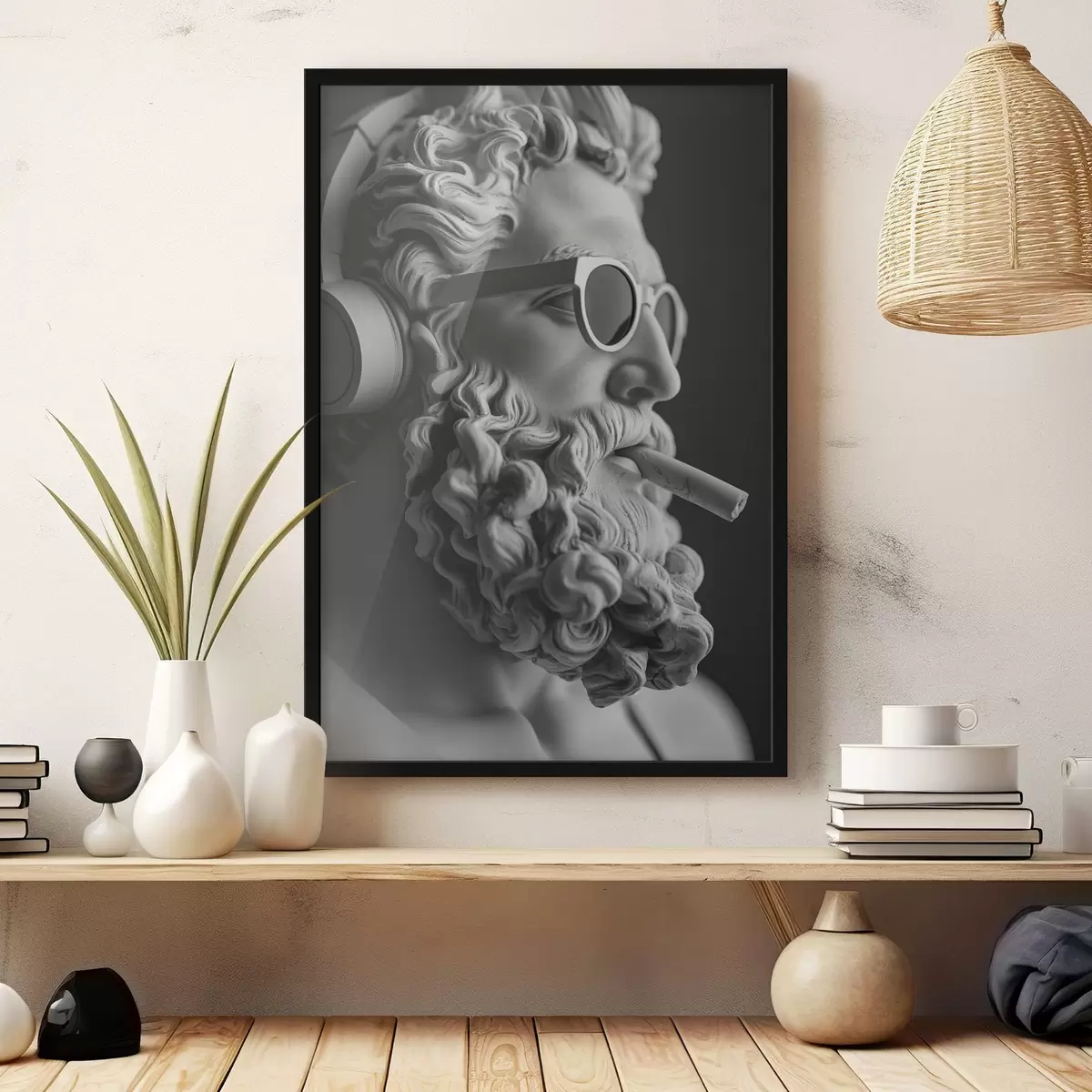 Poster must-valge Vana-Kreeka skulptuur Zeus kaasaegses stiilis Nr f26122