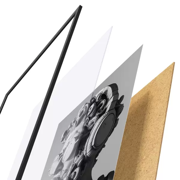 Plakat koosneb raamist, pleksiklaasist, trükitud pildist ja puitlaastplaadist alusplaadist. Tänu tagaküljel olevatele kinnitustele saab plakati kohe seinale riputada.