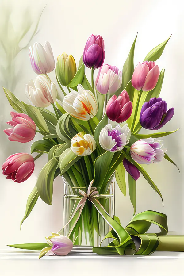 Poster Värvilised tulbid klaasvaasis Nr f31219