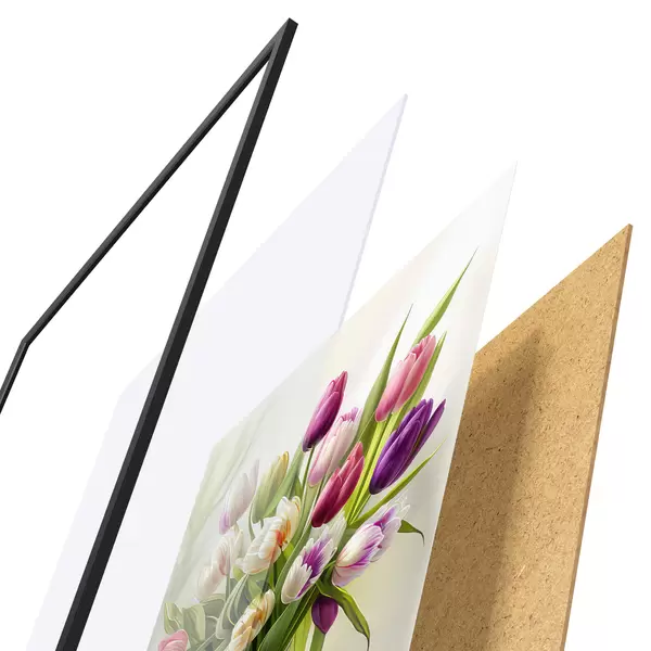 Plakat koosneb raamist, pleksiklaasist, trükitud pildist ja puitlaastplaadist alusplaadist. Tänu tagaküljel olevatele kinnitustele saab plakati kohe seinale riputada.