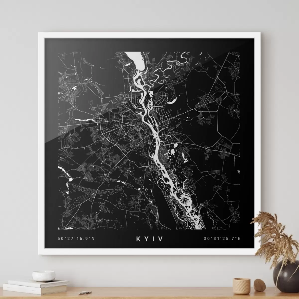 Poster Ukrainas asuva Kiievi linna minimalistlik kaart Nr f31428