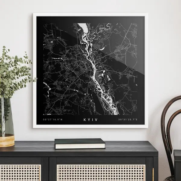 Poster Ukrainas asuva Kiievi linna minimalistlik kaart Nr f31428