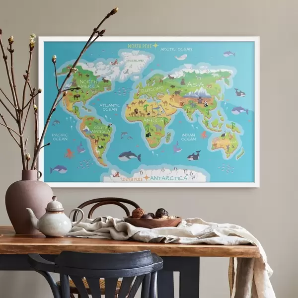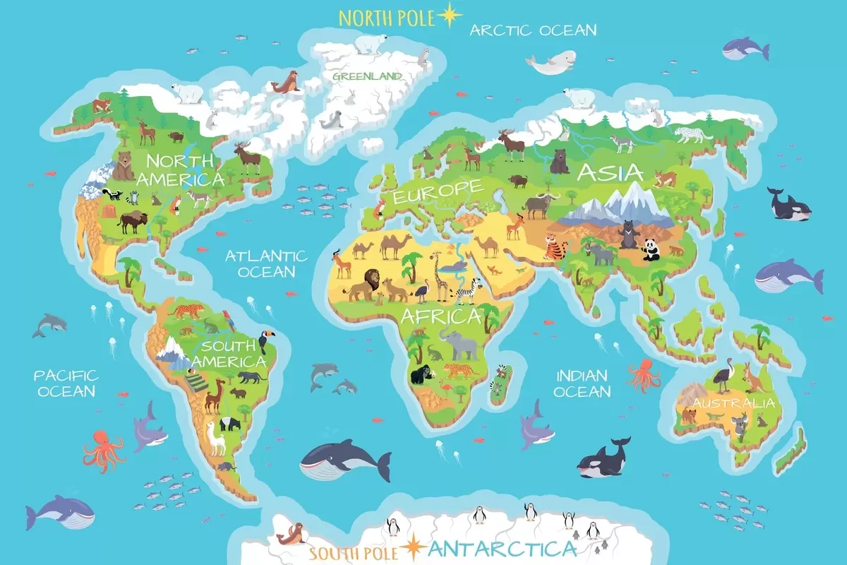 Plakat Kontinentide kaart koos loomadega f32105