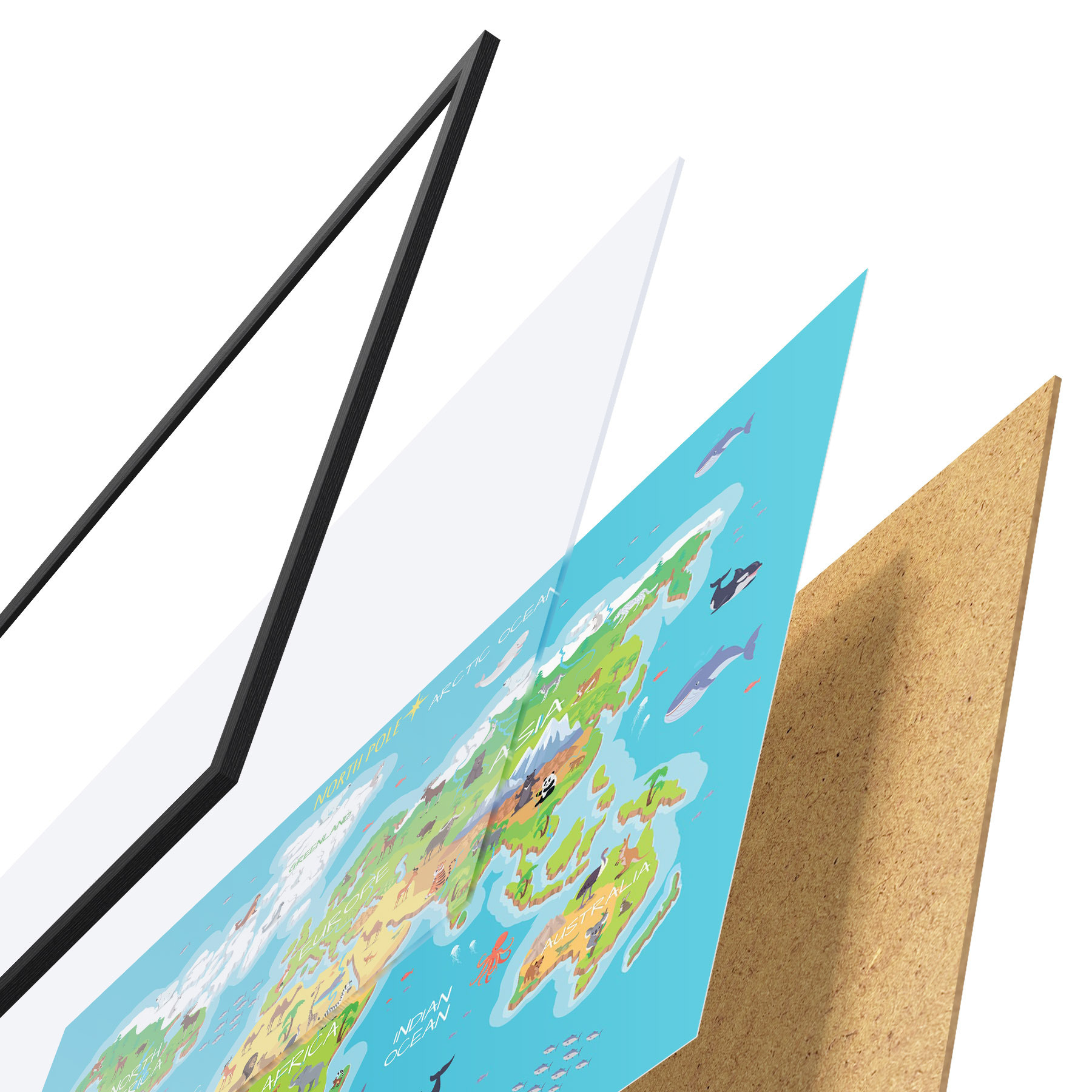 Plakat koosneb raamist, pleksiklaasist, trükitud pildist ja puitlaastplaadist alusplaadist. Tänu tagaküljel olevatele kinnitustele saab plakati kohe seinale riputada.