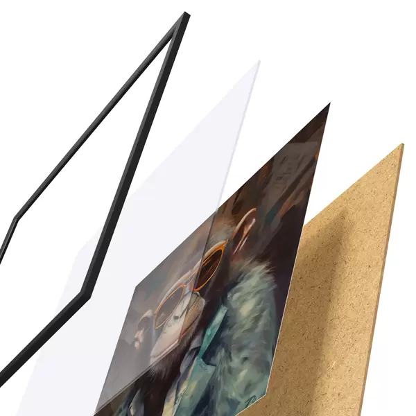 Plakat koosneb raamist, pleksiklaasist, trükitud pildist ja puitlaastplaadist alusplaadist. Tänu tagaküljel olevatele kinnitustele saab plakati kohe seinale riputada.