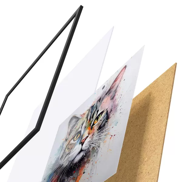 Plakat koosneb raamist, pleksiklaasist, trükitud pildist ja puitlaastplaadist alusplaadist. Tänu tagaküljel olevatele kinnitustele saab plakati kohe seinale riputada.