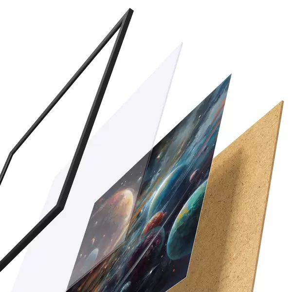 Plakat koosneb raamist, pleksiklaasist, trükitud pildist ja puitlaastplaadist alusplaadist. Tänu tagaküljel olevatele kinnitustele saab plakati kohe seinale riputada.