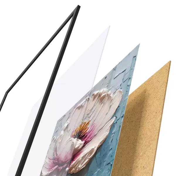Plakat koosneb raamist, pleksiklaasist, trükitud pildist ja puitlaastplaadist alusplaadist. Tänu tagaküljel olevatele kinnitustele saab plakati kohe seinale riputada.