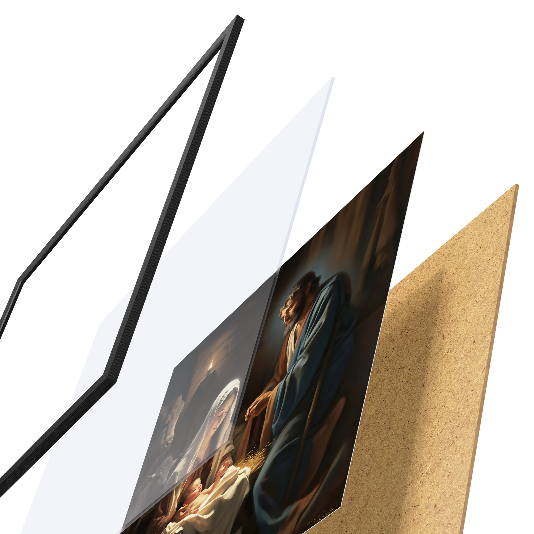 Plakat koosneb raamist, pleksiklaasist, trükitud pildist ja puitlaastplaadist alusplaadist. Tänu tagaküljel olevatele kinnitustele saab plakati kohe seinale riputada.