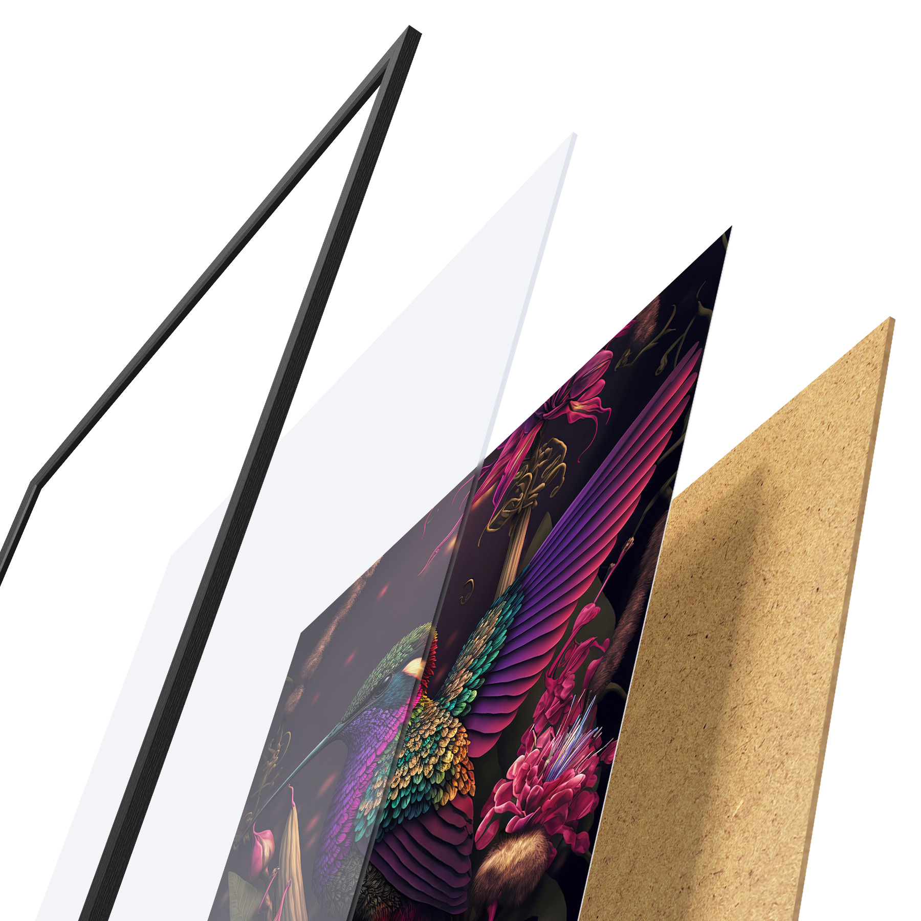 Plakat koosneb raamist, pleksiklaasist, trükitud pildist ja puitlaastplaadist alusplaadist. Tänu tagaküljel olevatele kinnitustele saab plakati kohe seinale riputada.