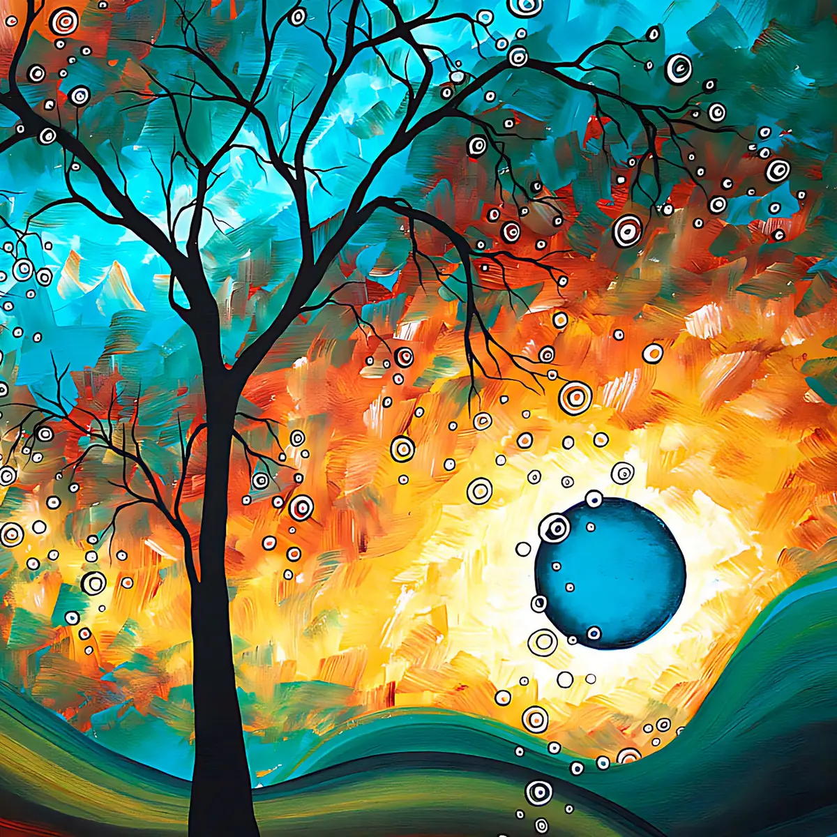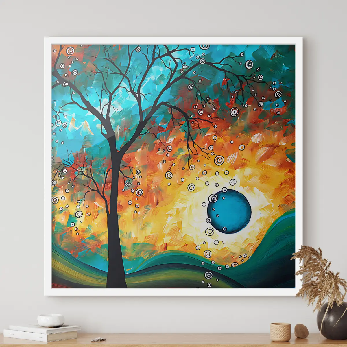 Plakat Elav päikeseloojang paljaste okste taga f34434