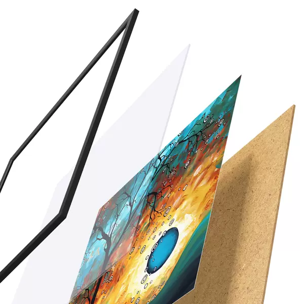 Plakat koosneb raamist, pleksiklaasist, trükitud pildist ja puitlaastplaadist alusplaadist. Tänu tagaküljel olevatele kinnitustele saab plakati kohe seinale riputada.