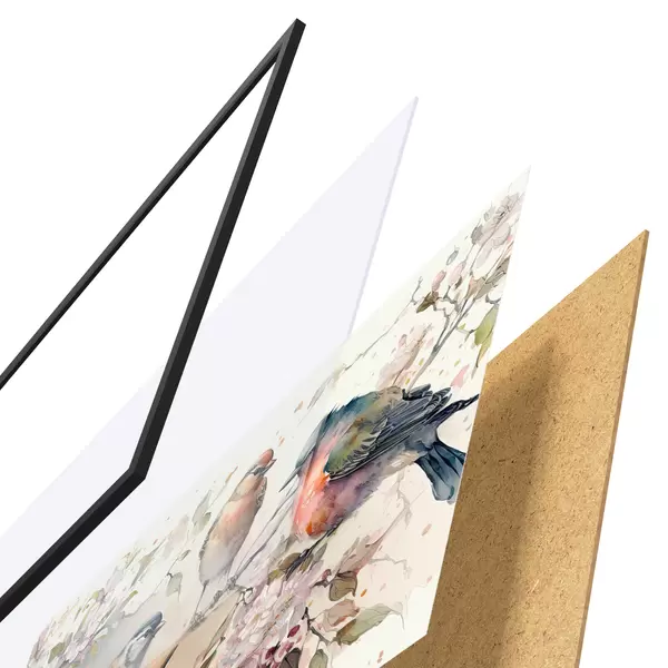 Plakat Värvikad linnud istusid õite keskel f34490