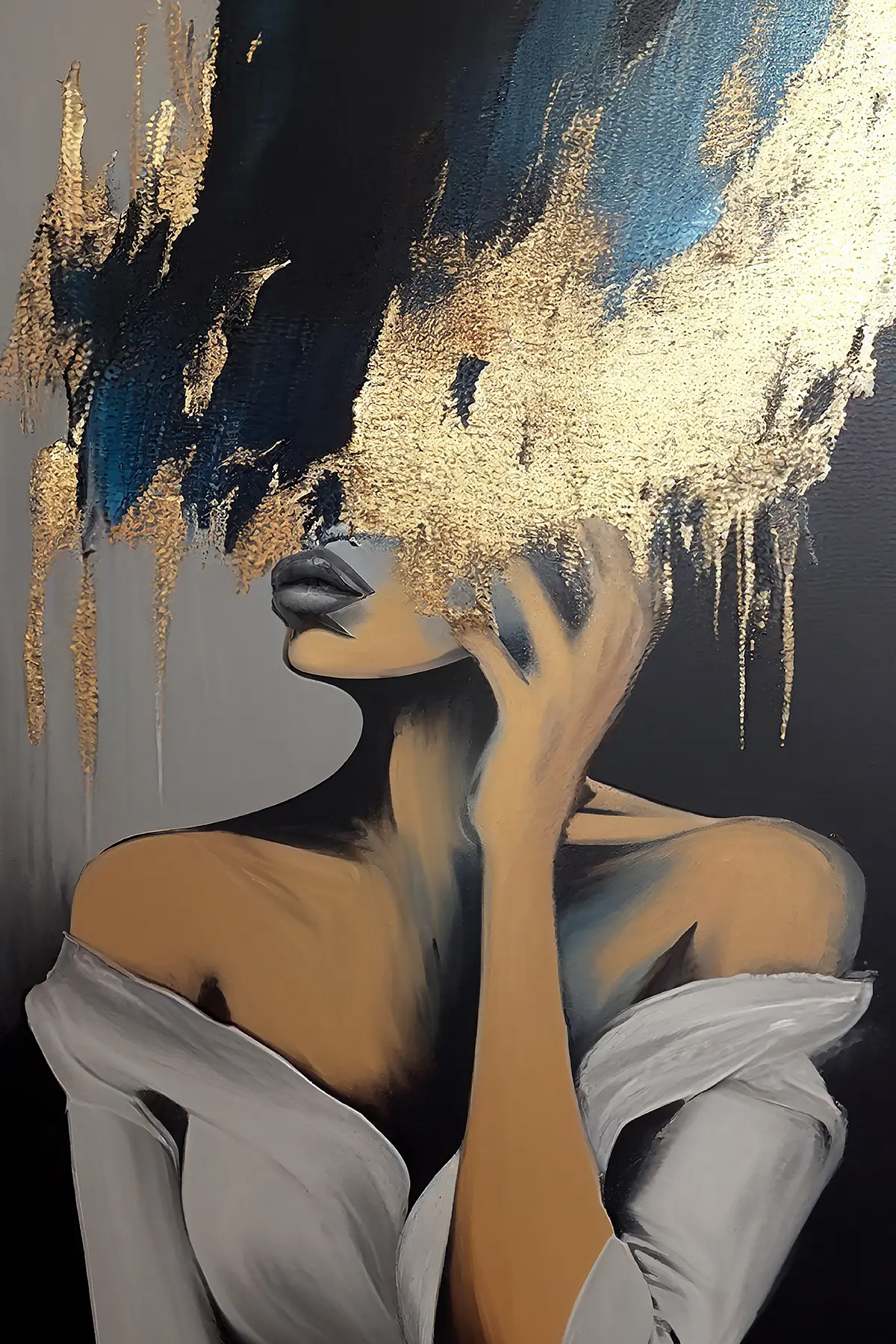 Plakat Noor naine, kelle nägu on kaetud musta akvarellvärviga f34863