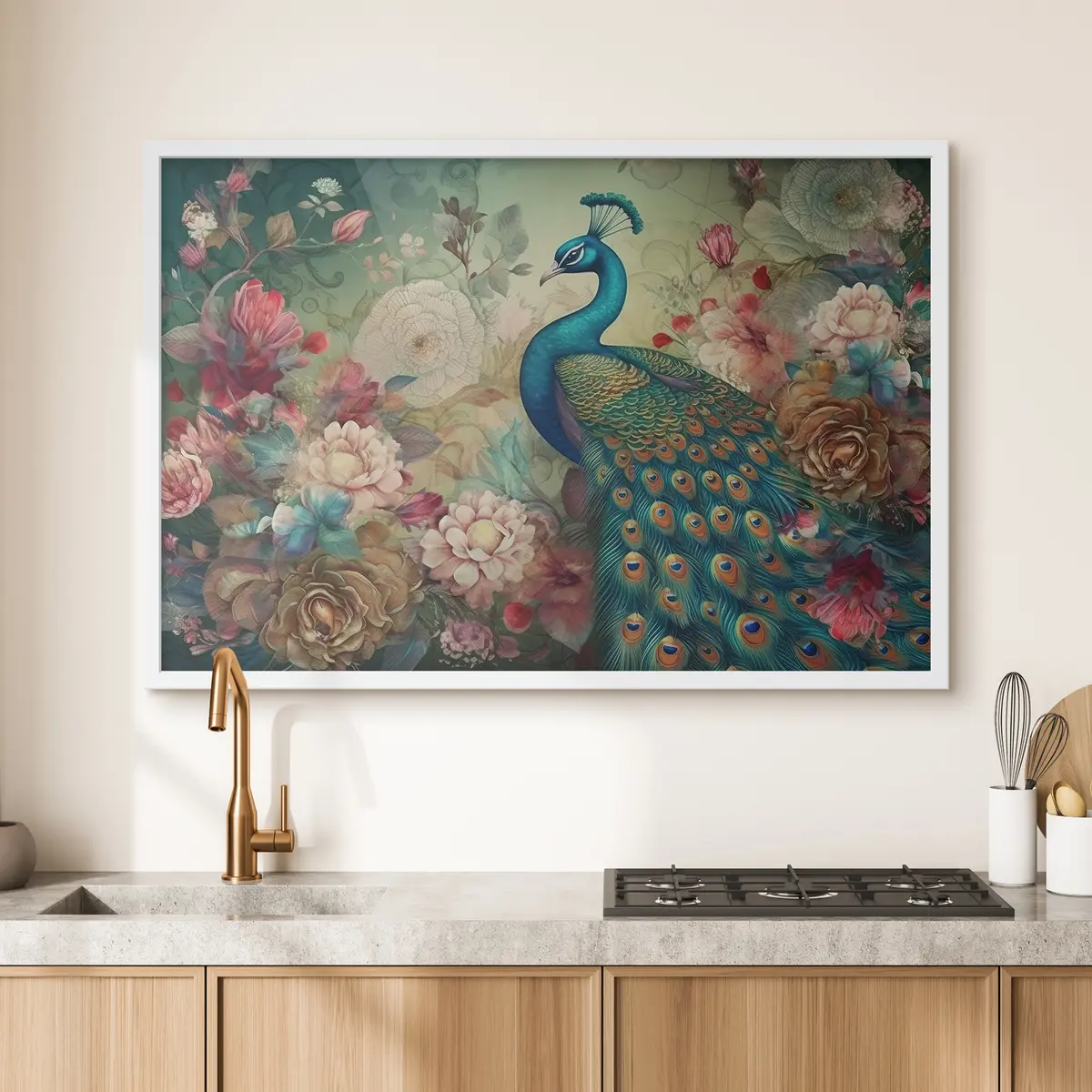 Plakat Särav paabulind õitsvate lillede keskel f34869