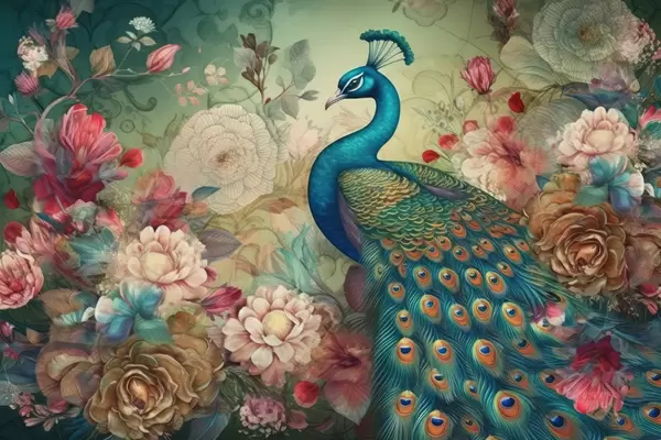 Plakat Särav paabulind õitsvate lillede keskel f34869