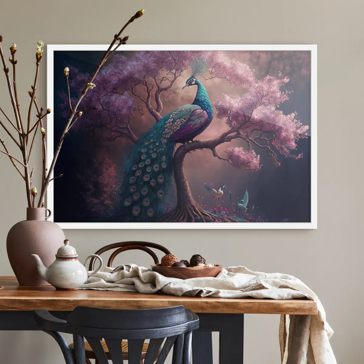 Plakat Peacock õitsevate kirsiõite seas f34875