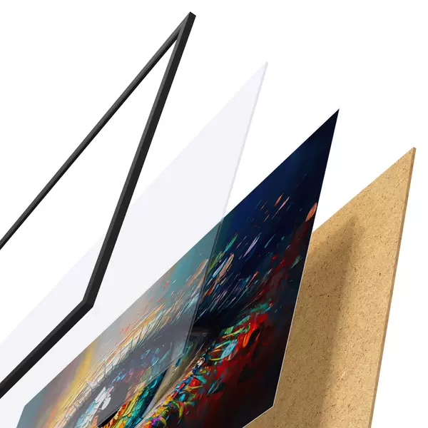 Plakat koosneb raamist, pleksiklaasist, trükitud pildist ja puitlaastplaadist alusplaadist. Tänu tagaküljel olevatele kinnitustele saab plakati kohe seinale riputada.