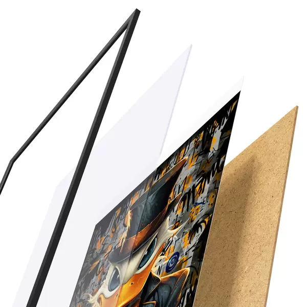 Plakat koosneb raamist, pleksiklaasist, trükitud pildist ja puitlaastplaadist alusplaadist. Tänu tagaküljel olevatele kinnitustele saab plakati kohe seinale riputada.