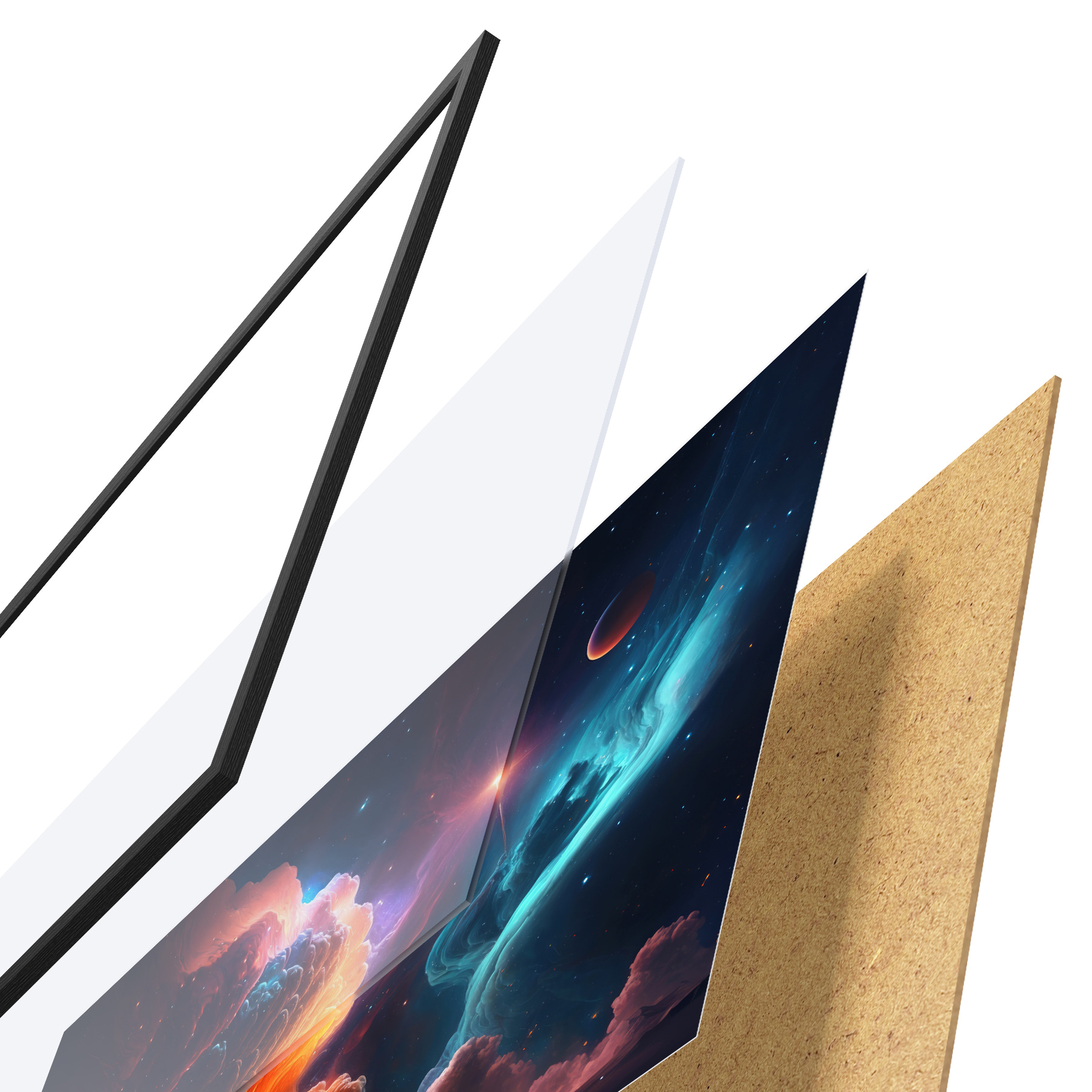 Plakat koosneb raamist, pleksiklaasist, trükitud pildist ja puitlaastplaadist alusplaadist. Tänu tagaküljel olevatele kinnitustele saab plakati kohe seinale riputada.