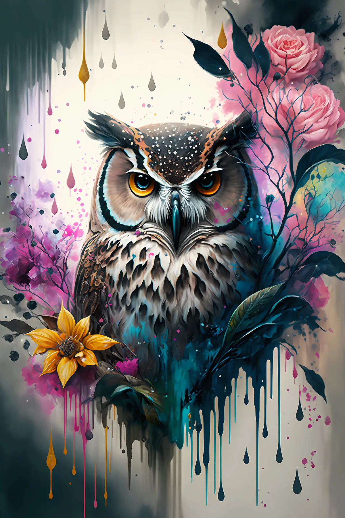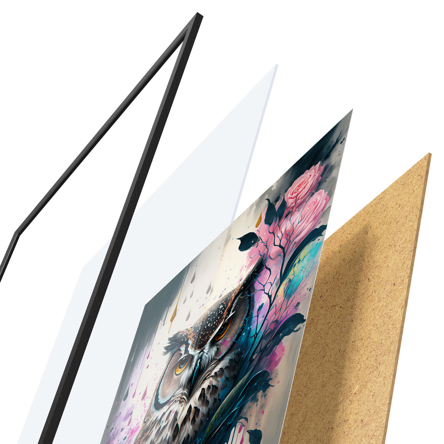Poster Öökull, mida ümbritsevad erksad õied Nr f35348