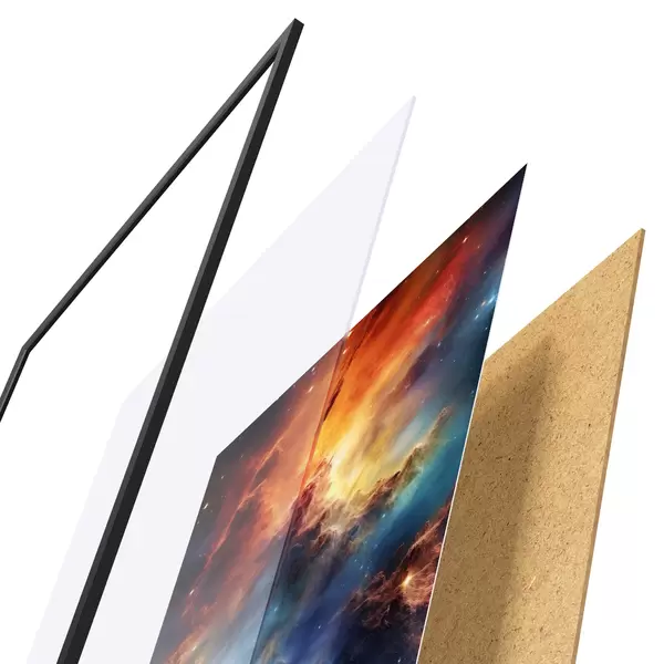 Plakat koosneb raamist, pleksiklaasist, trükitud pildist ja puitlaastplaadist alusplaadist. Tänu tagaküljel olevatele kinnitustele saab plakati kohe seinale riputada.