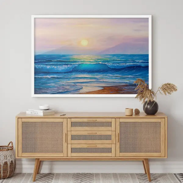 Poster Rahulikud lained peegeldavad päikeseloojangu värve Nr f35378