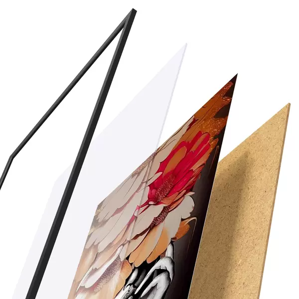 Plakat koosneb raamist, pleksiklaasist, trükitud pildist ja puitlaastplaadist alusplaadist. Tänu tagaküljel olevatele kinnitustele saab plakati kohe seinale riputada.