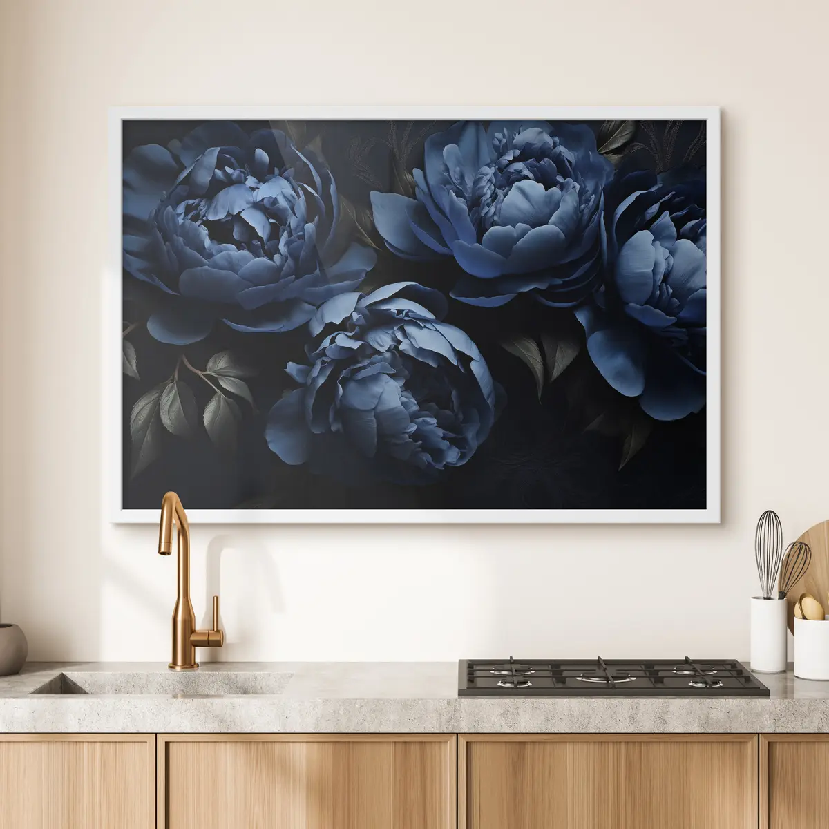 Poster Elegantsed sinised õielehed pehmes valguses Nr f35571