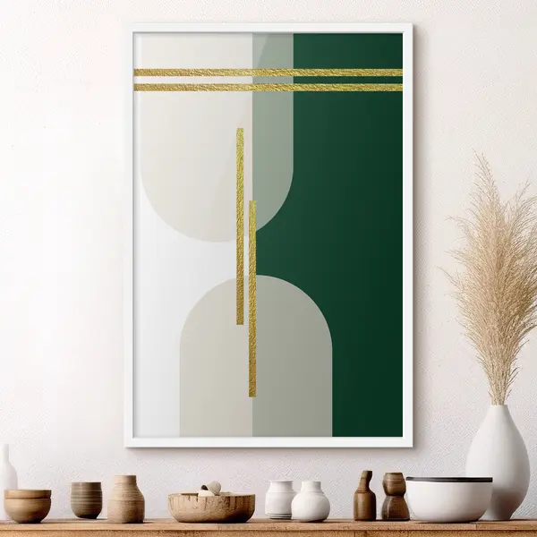 Plakat Abstraktne grafiķi sienas beiges ja rohelistes toonides f35943