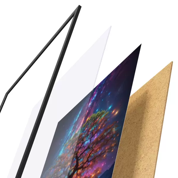 Plakat koosneb raamist, pleksiklaasist, trükitud pildist ja puitlaastplaadist alusplaadist. Tänu tagaküljel olevatele kinnitustele saab plakati kohe seinale riputada.