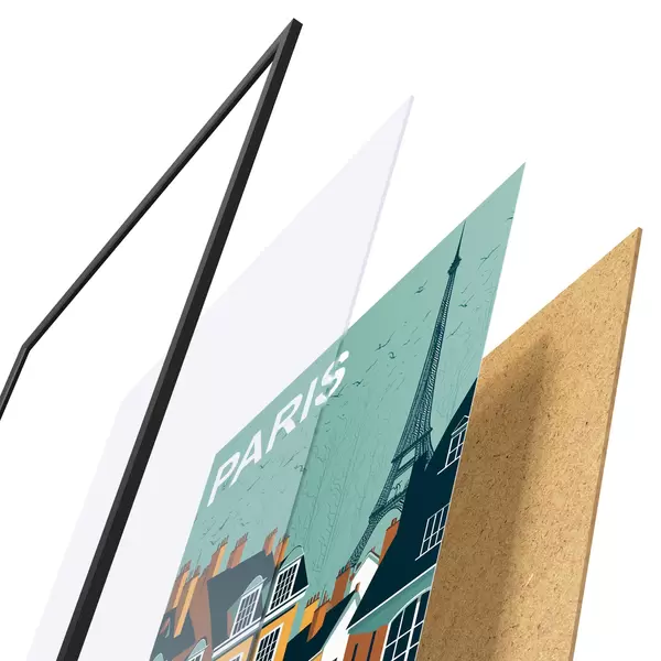 Plakat koosneb raamist, pleksiklaasist, trükitud pildist ja puitlaastplaadist alusplaadist. Tänu tagaküljel olevatele kinnitustele saab plakati kohe seinale riputada.