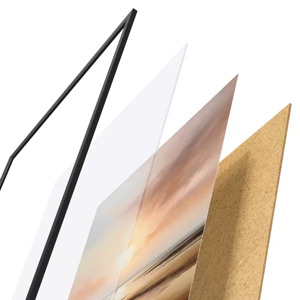 Plakat koosneb raamist, pleksiklaasist, trükitud pildist ja puitlaastplaadist alusplaadist. Tänu tagaküljel olevatele kinnitustele saab plakati kohe seinale riputada.