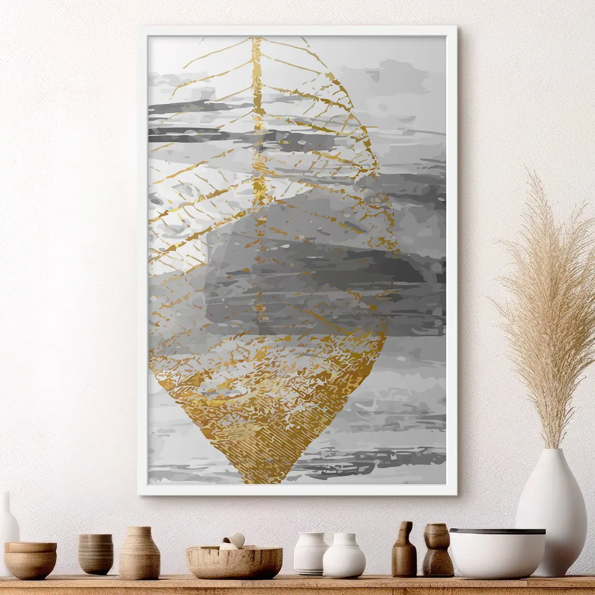 Plakat Elegantne leht vaoshoitud toonides f36483