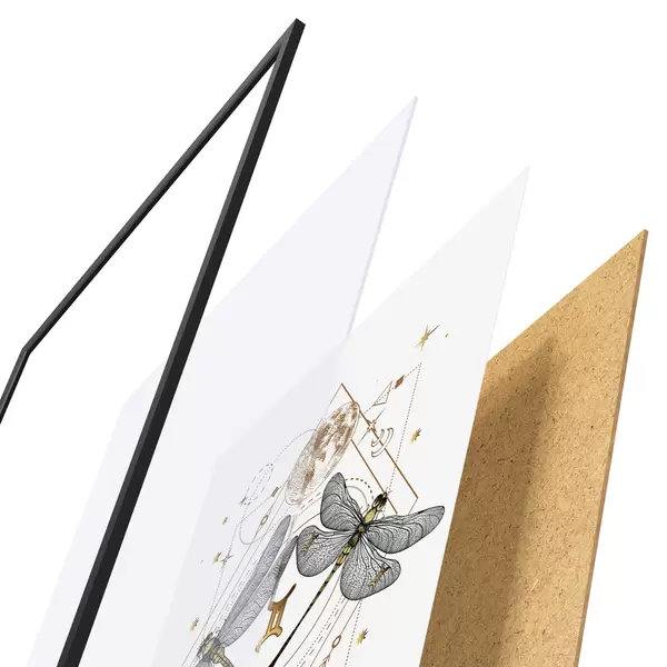 Plakat koosneb raamist, pleksiklaasist, trükitud pildist ja puitlaastplaadist alusplaadist. Tänu tagaküljel olevatele kinnitustele saab plakati kohe seinale riputada.