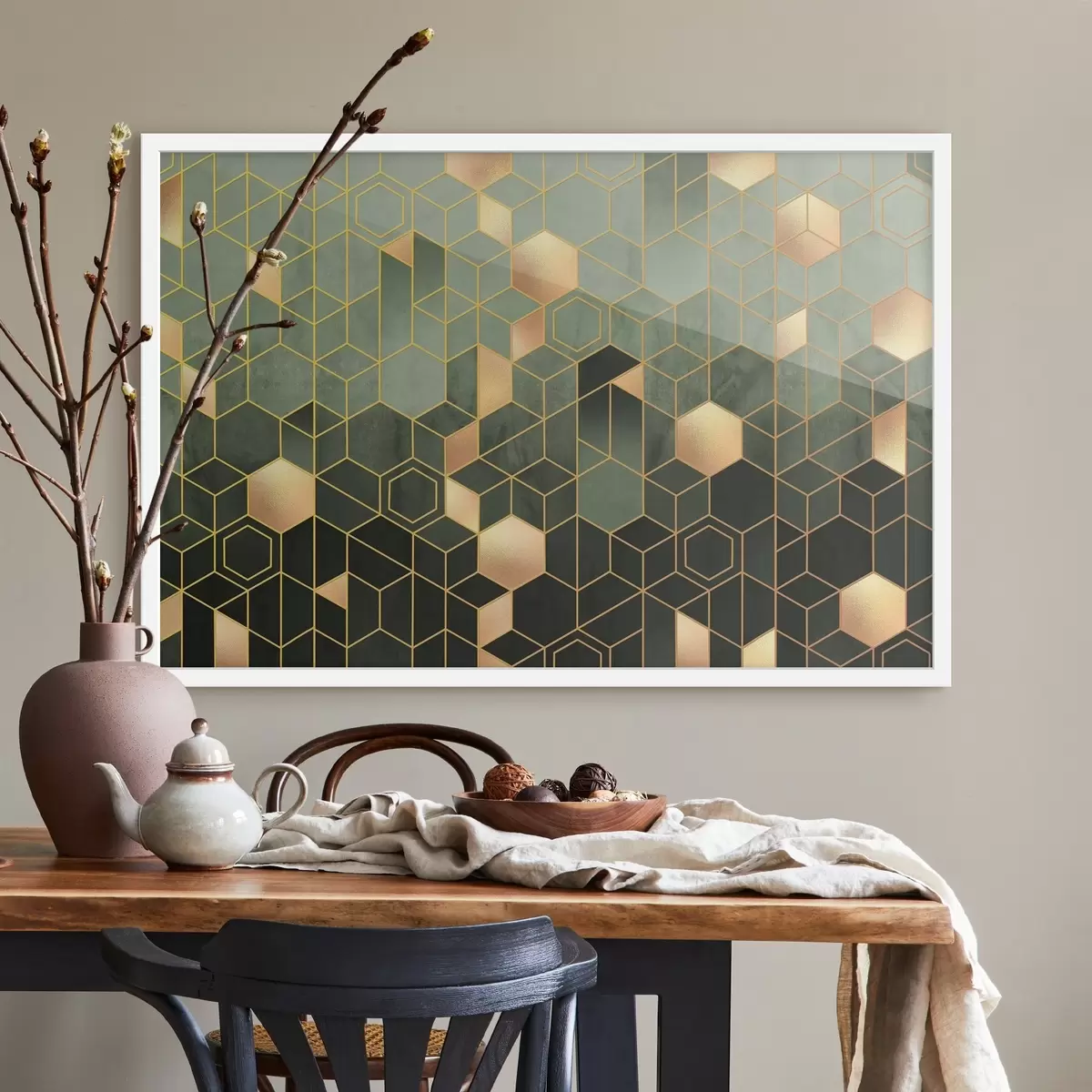 Poster Smaragdi ja merevaigu geomeetriline elegants Nr f36602v2