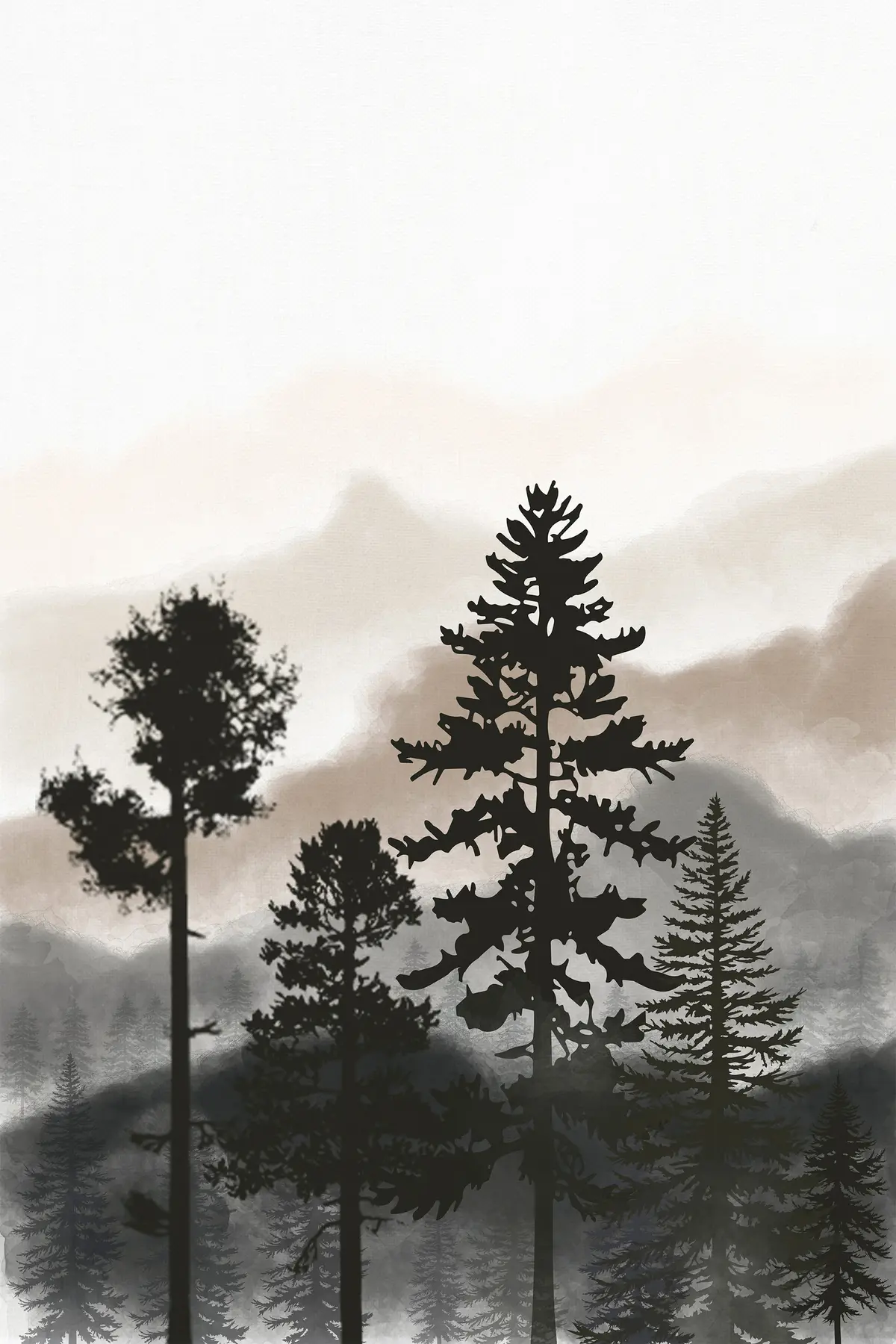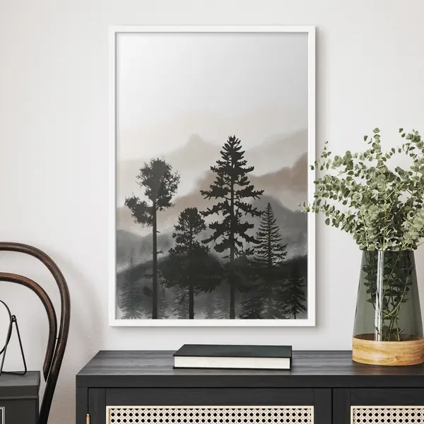 Plakat Uduvihmane mäed ja tumedad siluetid f36605v1