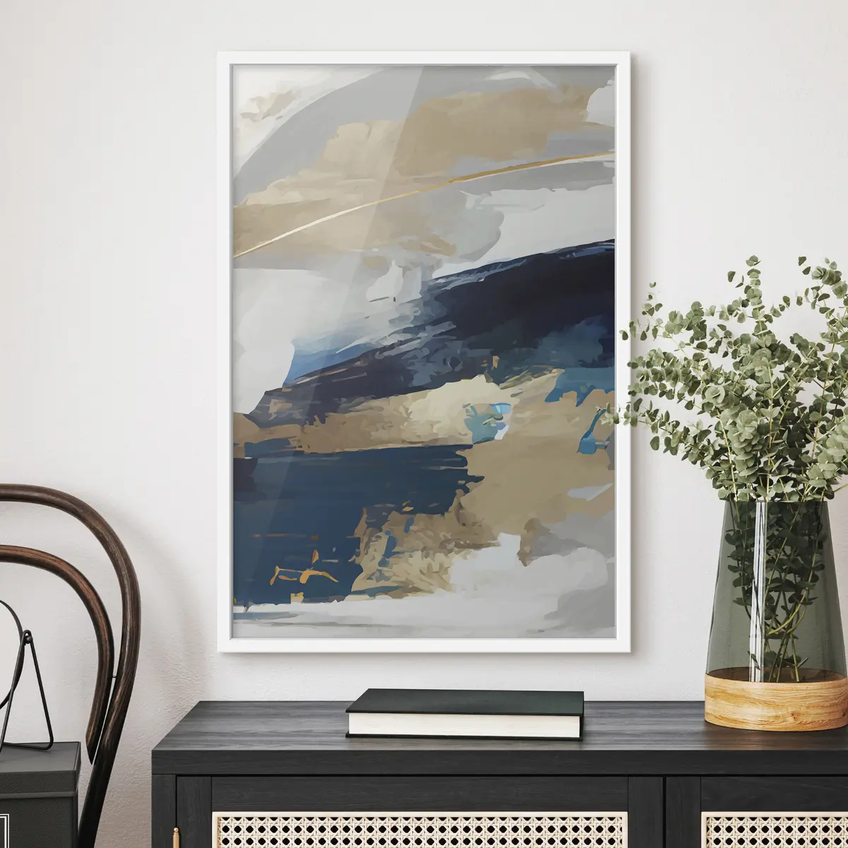 Plakat Väljendusrikas hall-sinine abstraktsioon f36621