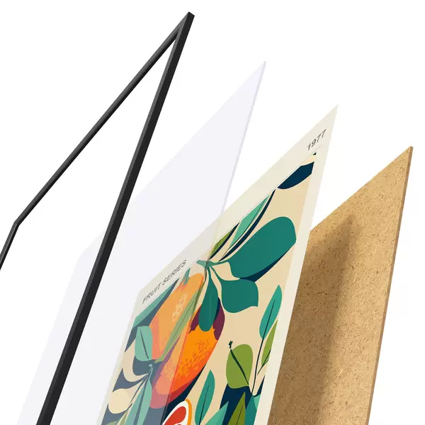 Plakat koosneb raamist, pleksiklaasist, trükitud pildist ja puitlaastplaadist alusplaadist. Tänu tagaküljel olevatele kinnitustele saab plakati kohe seinale riputada.
