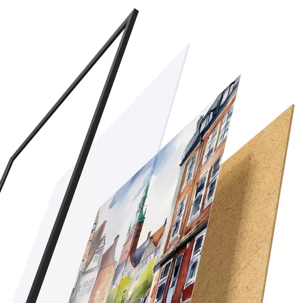 Plakat koosneb raamist, pleksiklaasist, trükitud pildist ja puitlaastplaadist alusplaadist. Tänu tagaküljel olevatele kinnitustele saab plakati kohe seinale riputada.