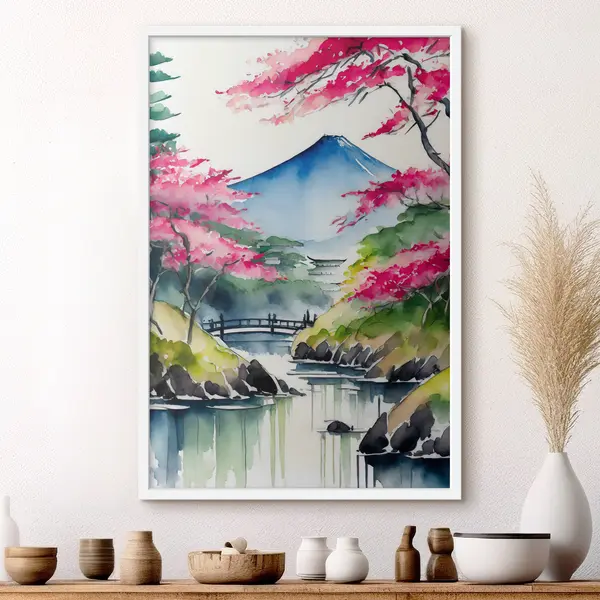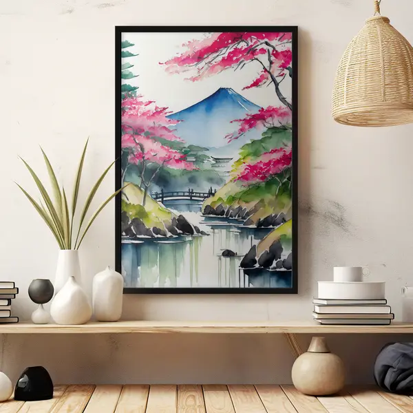 Plakat Kevad õitseb rahuliku mägijärve ääres f36691