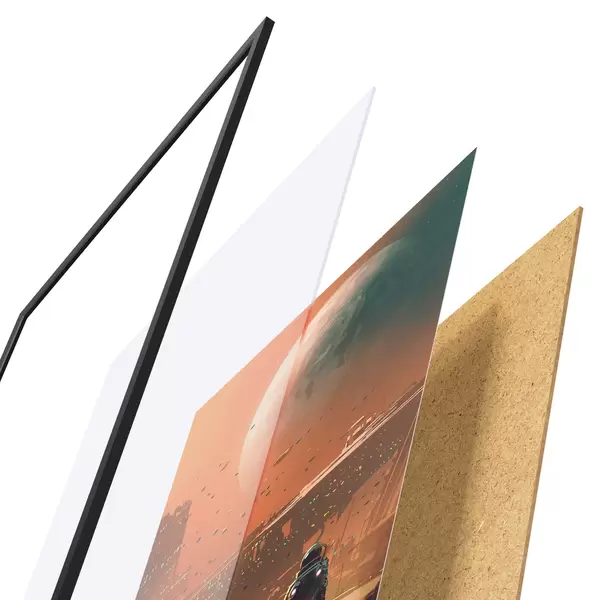 Plakat koosneb raamist, pleksiklaasist, trükitud pildist ja puitlaastplaadist alusplaadist. Tänu tagaküljel olevatele kinnitustele saab plakati kohe seinale riputada.